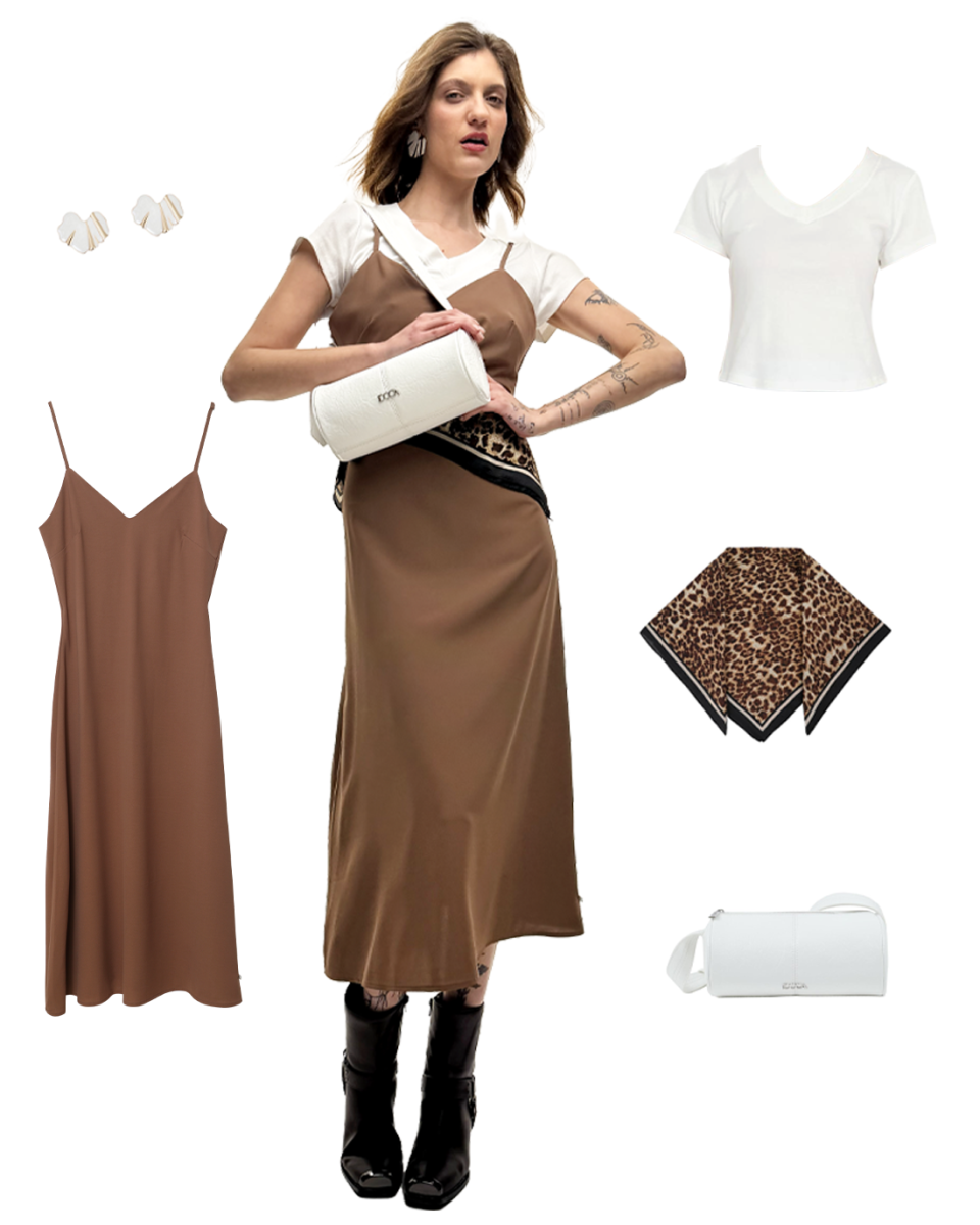 Το layering μπορεί να είναι και κομψό και θηλυκό. Ένα slip dress σε συνδυασμό με ένα basic t-shirt από μέσα δημιουργεί ένα effortless chic αποτέλεσμα. Παίξε με αποχρώσεις και απαλά prints – για να δώσεις ενδιαφέρον στο look χωρίς υπερβολές.