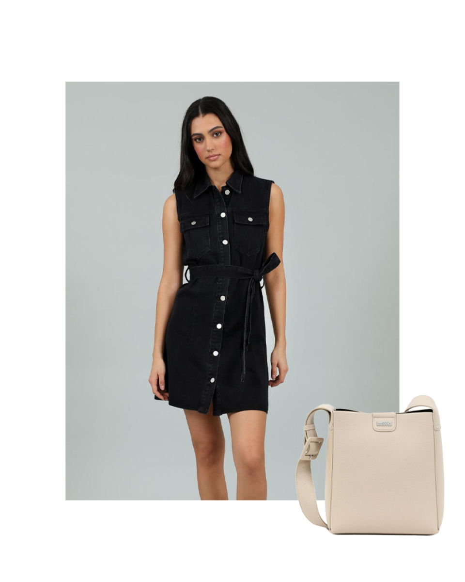 Το μαύρο denim μίνι φόρεμα είναι ένα από τα πιο βασικά κομμάτια που δεν πρέπει να λείπει από την ντουλάπα σου. Φόρεσε το με ένα πουκάμισο ή ένα t-shirt από μέσα για το τέλειο layering ή και μόνο του. Φυσικά, δεν πρέπει να ξεχάσεις μια τσάντα ώμου που φοριέται και χιαστί και χωράει όλα όσα θα χρειαστείς για τη βόλτα σου!